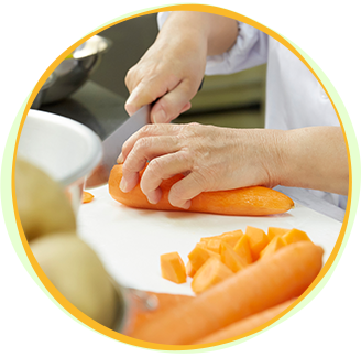- 食べる力に合わせて、大きさ・形・固さを工夫しています。